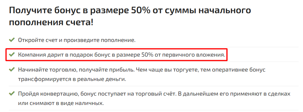 - Акции. Псевдоброкер предоставляет два вида бонуса – приветственный и бездепозитный. Приветственный начисляется на каждое пополнение депозита. Суть бонуса проста. Жулики сначала врут что начисления вам ДАРЯТ, но по факту их придется отрабатывать.
