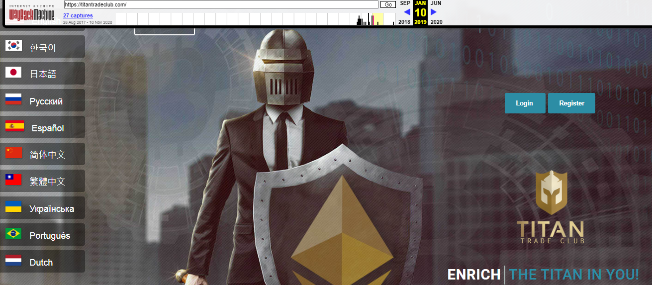 Согласно данным веб-архива еще 10 января 2019 года по этому адресу размещался сайт с другим дизайном, который принадлежал одноименной компании. Шарлатаны купили доменное имя с «историей», и пытаются представить свой лохотрон серьезной и надежной организацией. В реальности сайт нашего «героя» был запущен всего пару-тройку месяцев назад. «Брокер» утверждает, что стаж работы и прекрасную репутацию могут подтвердить многочисленные обзоры, отзывы и рейтинги, составляемые ведущими онлайн-изданиями и агентствами. Но против фактов не попрешь. В настоящее время помойку пиарят несколько нечистоплотных онлайн-ресурсов, а все позитивные комментарии о деятельности Титан Трейд Клуб написаны либо сотрудниками шарашки, либо проплаченными копирайтерами.