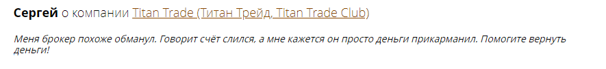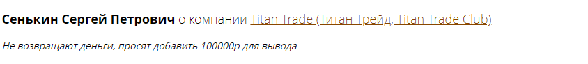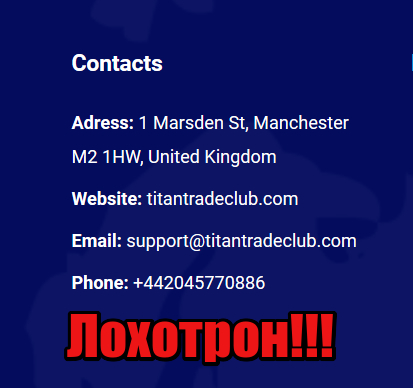 Titan Trade Club (titantradeclub.com) — это типичный черный брокер, который ворует деньги у своих клиентов. Эта «компания» не имеет никакого отношения к финансовым рынкам. Настоятельно рекомендуем держаться от этой организации подальше.