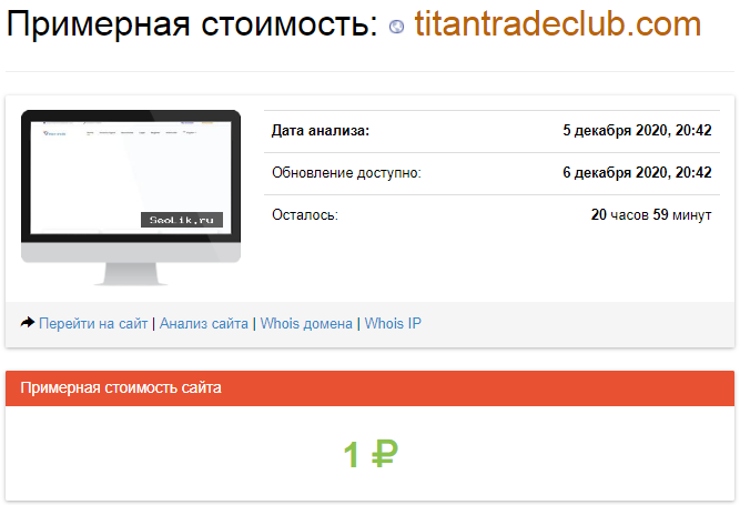 Примерная стоимость веб-сайта titantradeclub.com – 1 (!!!) рубль. Реальный уровень этого «брокера N 1» предельно понятен. Даже при беглом осмотре тематических разделов сайт конторы становится понятно, что перед нами дешевый лохотрон, ориентированный на русскоговорящую аудиторию. На внимание зарубежных посетителей мошенники, впрочем, и не рассчитывают.