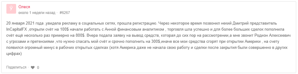Отзывов о нашем «герое» пока нет, а вот In Capital FX успел прилично наследить. Бывшие клиенты этой компании оставили в сети множество негатива. Контору обвиняют в откровенном мошенничестве и вымогательстве крупных сумм денег. ТаурузФХ это попытка захода по второму кругу. С чистого листа.