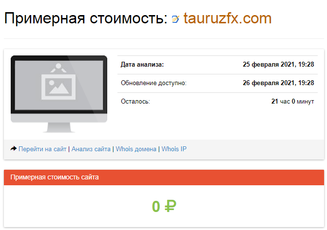 Не случайно специализированный сервис оценил стоимость tauruzfx.com в ноль (!!!) рублей. Это справедливая стоимости этой мусорной помойки.