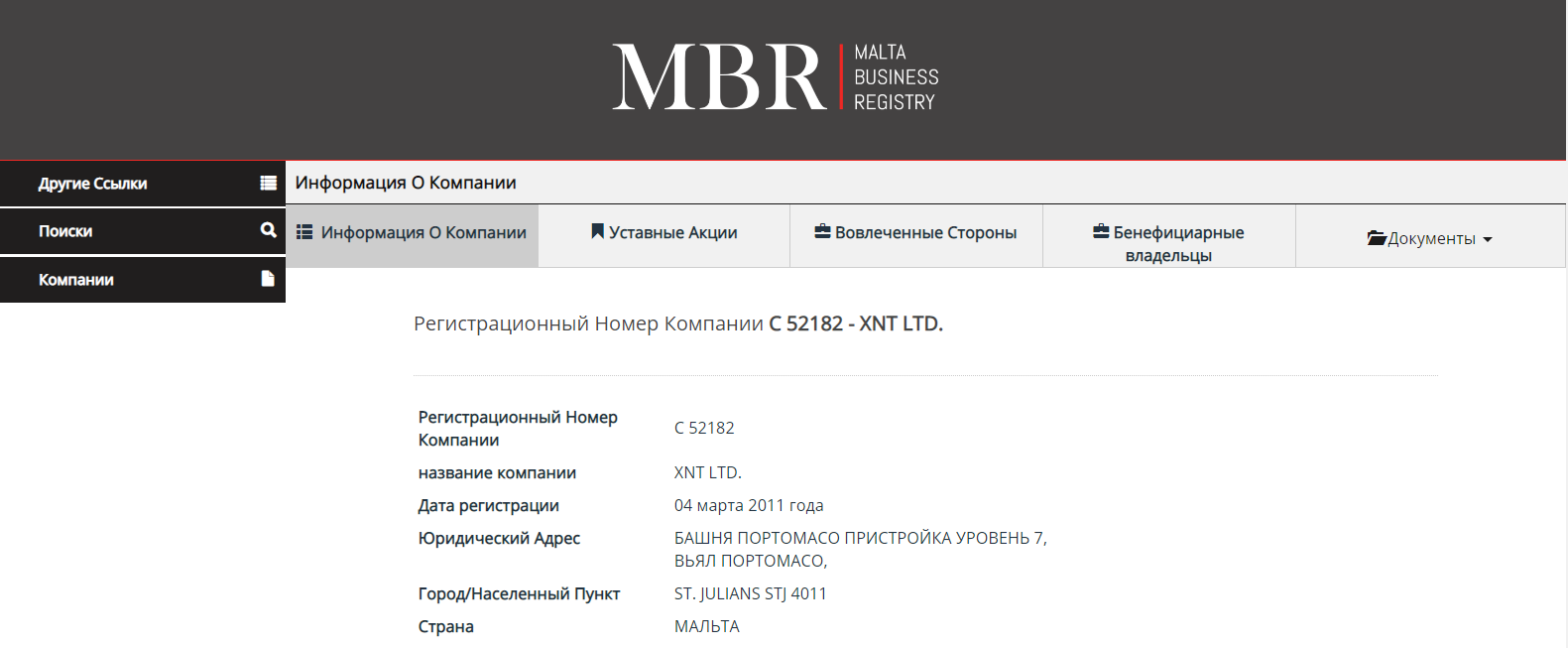 Компания XNT LTD действительно существует. Это серьезная корпорация с уставным фондом более 600 млн. евро: