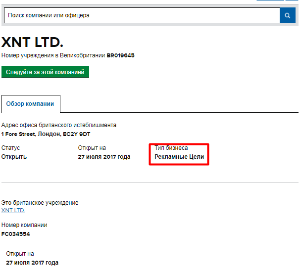 Деятельность британской дочки XNT LTD это отнюдь не инвестирование и трейдинг: