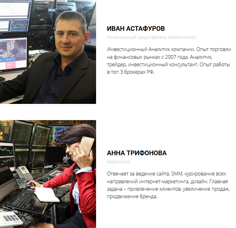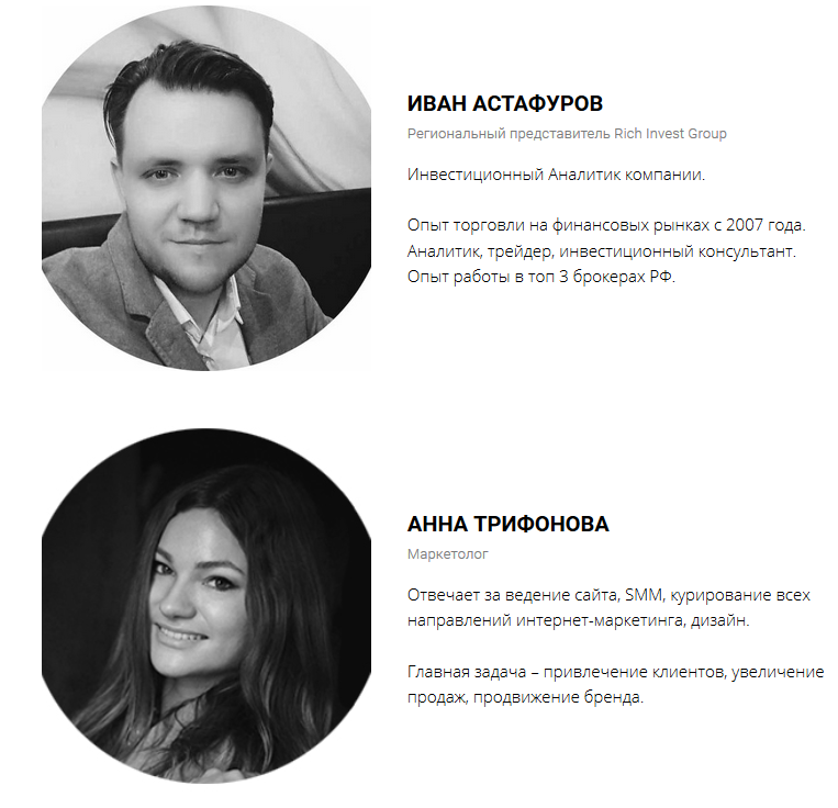 Персонажи Иван Астафуров и Анна Трифонова фигурируют на сайтах обоих лохотронов. Правда фото этих гуру разные. Все члены команды липовых фондов это, конечно же, фейки. Жулики просто украли фото посторонних людей и выдают их за своих работников.