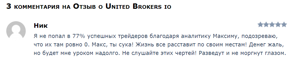 Судя по всему, мы имеем дело с серийными мошенниками. Форма регистрации и личный кабинет United Brokers практически ничем не отличается от аналогичных разделов сайтов десятков лоховозок: Ilar Investing, Pari Trade, Liberty Pro, TLP Broker, White Stone Group, TMT Group, BIR Trade, Maxima Trade, NYSE 24, Novafx, FinCentra, One Trade Group и это далеко не полный список. Эта шайка серийных мошенников из Украины уже успела развести на крупные суммы денег тысячи наивных пользователей сети.