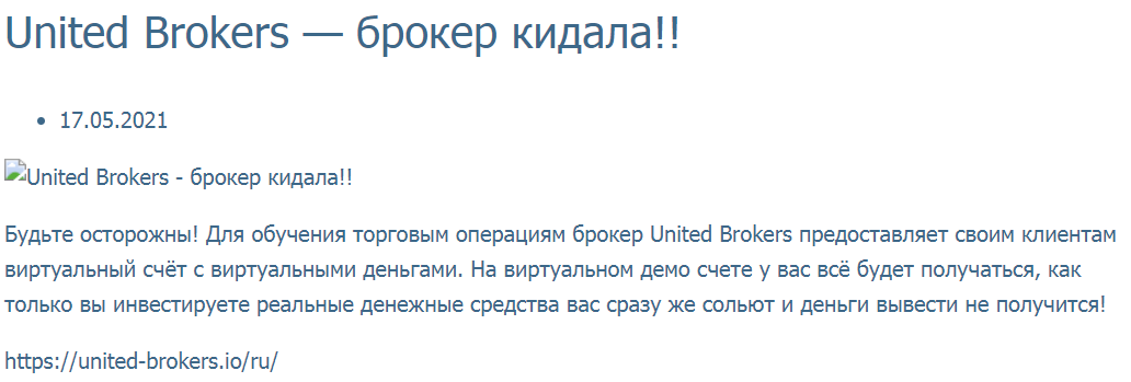 United Brokers (united-brokers.io) это очередная лживая анонимная помойка, не имеющая никакого отношения к финансовым рынкам. Заработать в этом скам-проекте не получится ни новичкам, ни опытным трейдерам. Мы настоятельно рекомендуем держаться от этого лохотрона подальше.