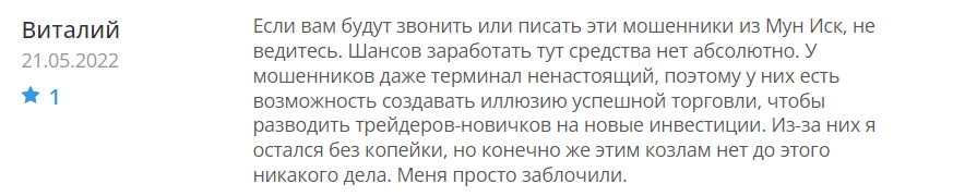 Аферисты весьма активно стартовали, что говорит о немалом опыте. Экс-клиенты шараги указывают на то, что представители компании пытаются развести на максимально возможные суммы. Жулики манипулируют котировками, сливают счета и блокируют аккаунты. Ни одного отзыва, подтверждающего вывод средств с этой платформы, в сети нет.