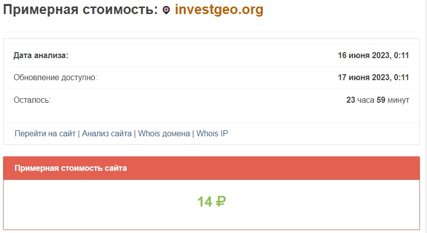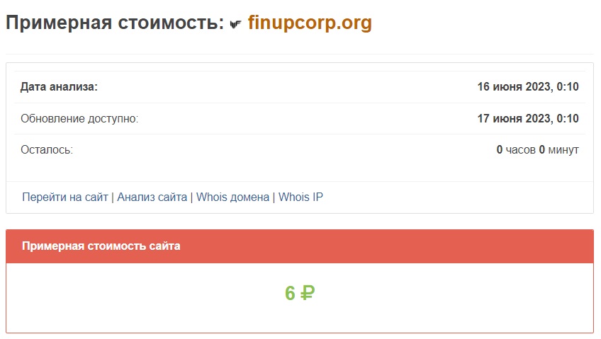 Специализированный сервис оценил старания разработчиков finupcorp.org и investgeo.org в жалкие копейки. Это явно не те деньги, которые должен стоит сайт приличной финансовой компании. Уже одного этого достаточно, чтобы сделать правильные выводы и поставить крест на идее любого сотрудничества с этими лохотронами.