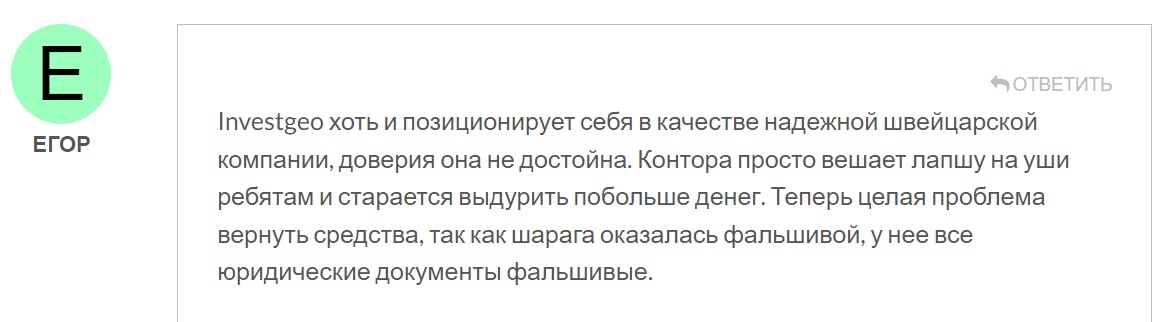 Негативных отзывов об Investgeo более чем достаточно, чтобы сделать правильные выводы: