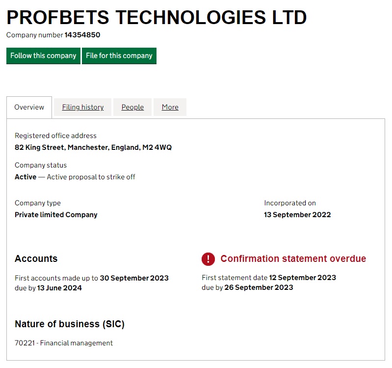 В британском реестре юридических лиц действительно есть организация с таким названием. Она была зарегистрирована 13 сентября 2023 года, разрешенный вид деятельности – финансовый менеджмент. Эта организация вообще не имеет права оказывать брокерские услуги. Жулики тупо пытаются прикрыть свои махинации данными сторонней, легально действующей британской компании, которые взяли в открытом доступе. Это довольно распространенная практика среди лохотронов.