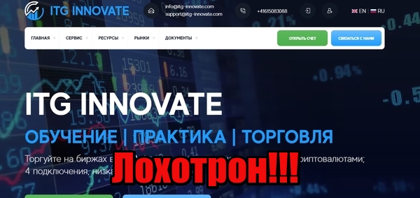 «ITG INNOVATE (itg-innovate.com) является инвестиционной компанией, предоставляющей доступ к глобальным электронным фьючерсным рынкам через наших клиринговых партнеров» — уверяют посетителей на сайте очередного фейкового брокера. Потенциальным клиентам вешают лапшу на уши про прелести сотрудничества с этими жуликами и подводят к мысли о необходимости открытия торгового счета. Торопиться с этим не стоит. К «глобальным электронным фьючерсным рынкам» эта шарага не имеет никакого отношения. Рассказываем, почему не стоит связываться с этим лохотроном.