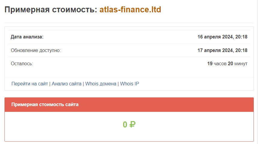 Поверить в эти сказки может только очень наивный человек. Ответа на простой вопрос: а когда же и где была создана эта замечательная компания, на сайте лохоброкера нет. Домен atlas-finance.ltd был зарегистрирован 4 марта 2024 года. Рассказывать небылицы по поводу солидного опыта работы своего «детища» вынуждены практически все владельцы подобных псевдоброкерских ресурсов. Реальный стаж работы этой лоховозки всего пара недель. По факту мы имеем дело со свежезапущенным лохотроном, который находится в активном поиске финансовых доноров.