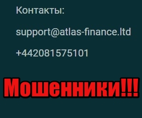 Раздела «Контакты» на сайте лохоброкера нет вообще. Лишь в футере сайта жулики разместили липовый телефон (+442081575101) и мейл [email protected]. Адрес офиса в открытом доступе отсутствует. Ссылок на группы в социальных сетях на сайте Atlas Finance почему-то тоже нет.