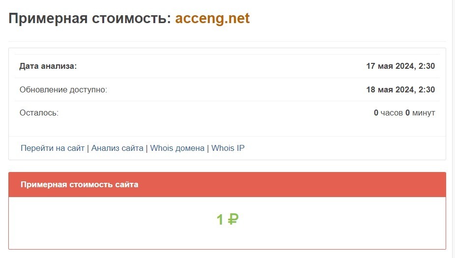 Специализированный сервис оценивает старания разработчиков acceng.net и sinavtdes.com в смешные деньги. Только очень наивный человек может поверить, что за подобными пустышками может стоять легально действующие финансовые компании. Уже одного этого достаточно, чтобы сделать правильные выводы и навсегда забыть про эти лоховозки. Жулики прекрасно знают, что срок жизни подобных лохотронов крайне недолог и в ближайшем будущем от сайтов придется избавляться. Аферисты банально не видят смысла вкладываться в продвижение мошеннических ресурсов.