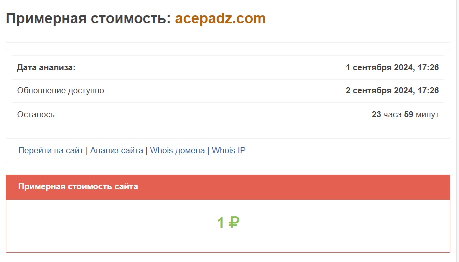 Специализированные сервисы оценивают усилия разработчиков acepadz.com и rofciscod.com в смешные деньги. Только очень наивный человек может поверить, что за такими пустышками стоят легально действующие финансовые компании. Уже одного этого достаточно, чтобы сделать правильные выводы и навсегда забыть про эти мошеннические сайты. Аферисты прекрасно понимают, что срок жизни таких жульнических вебресурсов крайне короток, и в скором времени от них придется избавиться. Поэтому они не видят смысла вкладываться в продвижение этих мошеннических сайтов и экономят буквально на всем.