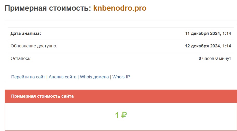 Стоимость сайтов knbenodro.pro, roseintd.com, dewologie.com и spirparez.com по оценке специализированного сервиса составляет смешные деньги! Жулики не видят никакого смысла вкладывать деньги в ресурс, который через пару месяцев все равно придется прикрыть из-за многочисленных негативных отзывов.