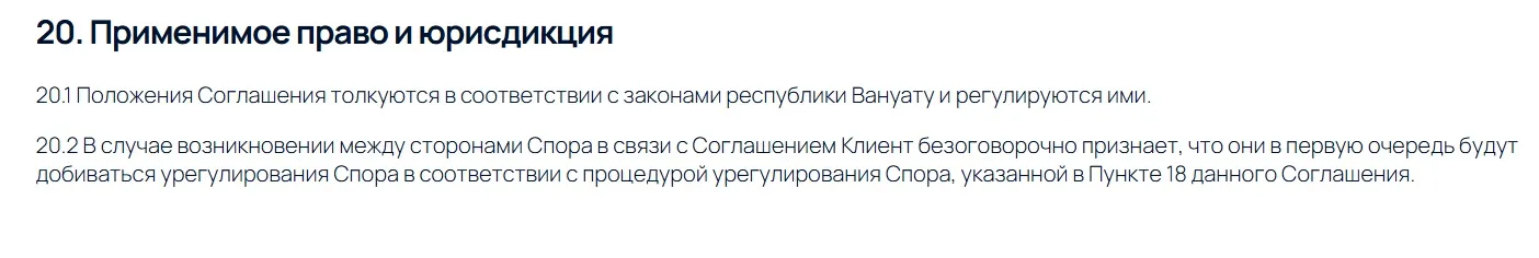 В клиентском соглашении судиться кинутым клиентам якобы британского брокера предлагают не в Лондоне, что является общепринятой практикой, а почему-то в офшоре Вануату. Впрочем и там обманутым трейдерам ничего не светит: рассматривать иск к фейковой конторе не будет ни один суд в мире. Это также подтверждает, что перед нами аферисты.
