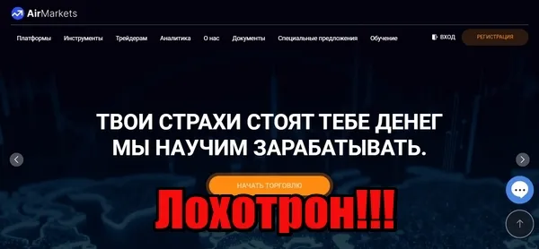 В мире трейдинга, где каждый шаг может привести как к успеху, так и к потере, появление фейковых брокеров становится настоящей угрозой. Одним из таких мошеннических скам-проектов является Airmarkets (airmarkets.ac). Этот лохоброкер обманным путем привлекает инвесторов обещаниями высокой прибыли и простоты торговли. Но как на самом деле обстоят дела? Мы собрали реальные отзывы трейдеров, которые столкнулись с этой конторой лицом к лицу. В нашей статье мы разберем схемы мошенничества, которые скрываются за привлекательной картинкой Airmarkets, и поделимся полезной информацией для тех, кто хочет сохранить свои средства и избежать ловушек.