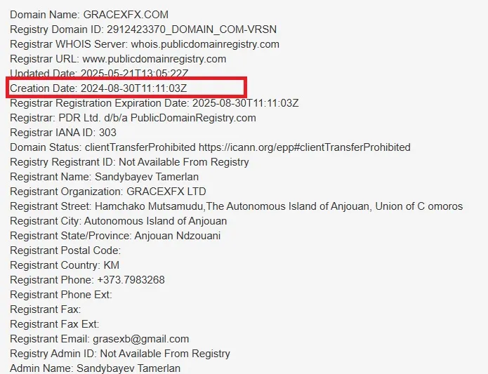 Доменное имя gracexfx.com было зарегистрировано 30 августа прошлого года неким господином с молдавским номером телефона. Сайт лохоброкера был запущен еще позже. Набрать армию клиентов, сопоставимую с населением областного центра, ноу-нейм конторе просто нереально. В профессиональной тусовке GraceX вообще никому не известна. Все сказки об «успешном успехе» рассчитаны на зеленых новичков, которым можно вешать на уши любую лапшу. По факту перед нами никому не известная контора, которая появилась буквально вчера и которая спустя небольшое время также тихо и бесследно исчезнет. Всегда проверяйте информацию из независимых источников и остерегайтесь платформ, которые предоставляют ложные данные.