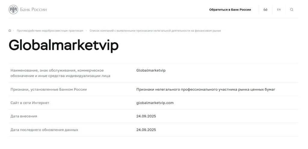 На деятельность жуликов из Global Market VIP обратил внимание и Центробанк РФ. Российский регулятор внес нашего героя в черный список и предупредил об опасности любого сотрудничества с этой лоховозкой.