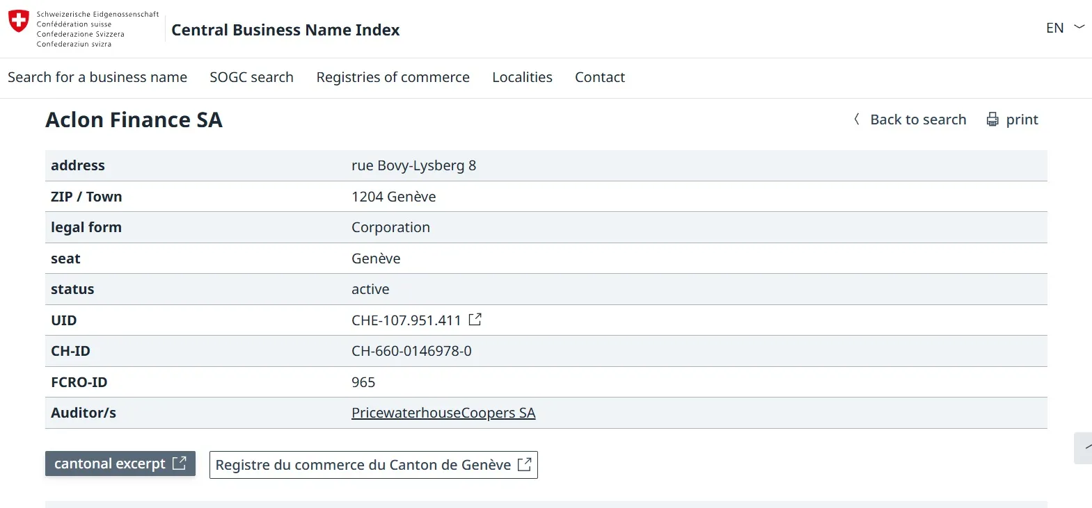 - Название юридического лица: Aclon Finance SA