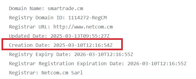 Также стоит обратить внимание на дату регистрации домена smartrade.cm — 10 марта текущего года. Сайт лохоброкера был запущен еще позже. Реальный стаж работы этой лоховозки от силы несколько недель. И это никак не вяжется с заявлениями аферистов о ведущих позициях в мире онлайн-трейдинга. По факту мы имеем дело недавно запущенным лохотроном, который находится в активном поиске наивных буратин.