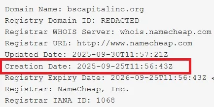 Доменное имя bscapitalinc.org было создано 25 сентября текущего года, реальный стаж работы этой лоховозки всего несколько дней. По факту мы имеем дело с анонимным свежесобранным лохотроном, деятельность которого никем не регулируется и не контролируется. Вы еще хотите стать спонсором неизвестных аферистов?