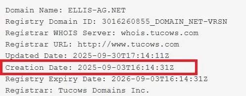 Еще один немаловажный момент — дата регистрации домена ellis-ag.net — 3 сентября текущего года. Реальный стаж работы этой лоховозки всего пару недель. По факту мы имеем дело с анонимными аферистами, деятельность которых никем не регулируется и не контролируются. Жулики совсем недавно слепили новый лохотрон и находятся в активном поиске наивных и богатыэ буратин.