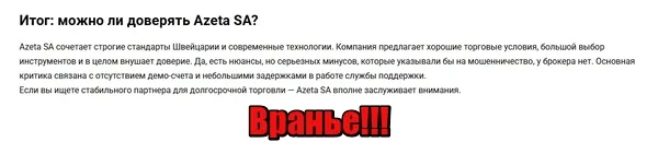 Еще одним явным признаком мошенничества является агрессивный маркетинг и обещания огромных прибылей без риска. AZETA SA активно рекламирует свои услуги, утверждая, что любой человек, даже без опыта в трейдинге, может быстро и легко заработать большие деньги. Такие заявления обычно делают компании, которые пытаются заманить как можно больше клиентов, не заботясь о реальных результатах и последствиях для их инвесторов.